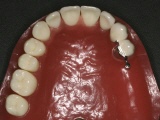 Das große Problem bei der einseitigen Prothese jedoch ist die fehlende Stabilität gegenüber horizontalen Kräften (siehe gebogenen Pfeil rechts). Die zwei überkronten „Haltezähne“ werden durch diese Kräfte sehr ungünstig belastet. Daher ist es oftmals nur eine Frage der Zeit, bis diese sich locker oder aber frakturieren (brechen) und letzten Endes verloren gehen.