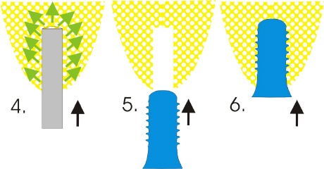 4. Durch die Verdrängung des Knochens wird dieser weiter kondensiert.