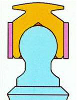 Das rechte Bild zeigt das Konstruktionsprinzip des Kugelkopfaufbaus mit dem aufgesetzten Snap-Element.