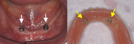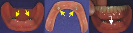 Die Prothese klickt mit den eingearbeiteten „Snap“-Elementen über die auf den Implantaten aufgeschraubten Kugelköpfe. Somit ist im Gegensatz zur einfachen Totalprothese ein erheblicher Gewinn an Prothesenhalt gegeben.